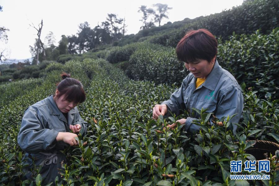 3月12日,在位于杭州市西湖風景名勝區(qū)滿覺隴村白鶴峰的西湖龍井茶葉基地,茶農(nóng)在采摘西湖龍井頭茶,這里是西湖龍井茶核心產(chǎn)區(qū)之一。