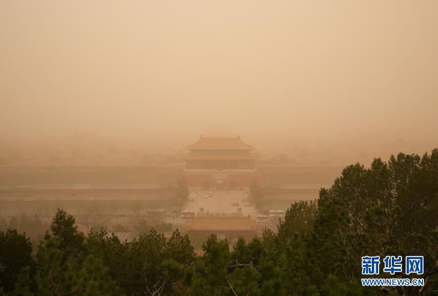 這是3月15日在景山上拍攝的北京故宮。當日,我國北方多地出現(xiàn)沙塵天氣。新華社記者 陳曄華 攝