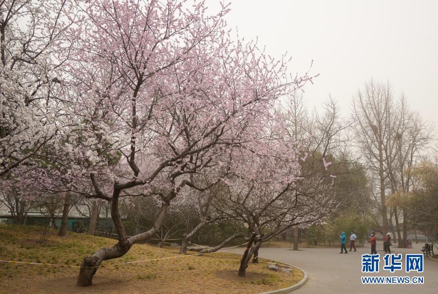 3月15日,人們?cè)诒本┯駵Y潭公園晨練。當(dāng)日,我國(guó)北方多地出現(xiàn)沙塵天氣。新華社記者 陳曄華 攝