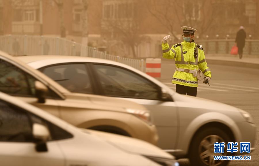 3月15日,交警在天津市南開(kāi)區(qū)道路上執(zhí)勤。當(dāng)日,我國(guó)北方多地出現(xiàn)沙塵天氣。新華社記者 李然 攝