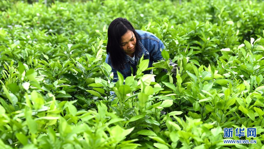 4月5日,廣西欽州市久隆鎮(zhèn)青草村村民在田間護(hù)理果苗。
