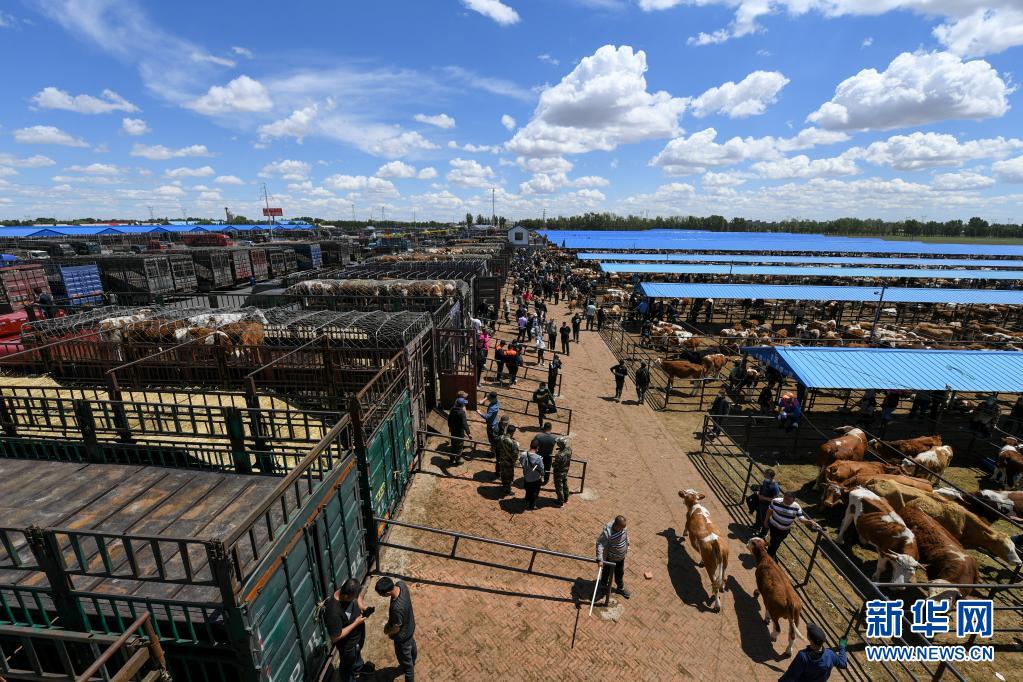 開魯牛市位于內(nèi)蒙古自治區(qū)通遼市開魯縣,歸屬開魯縣雨田農(nóng)畜交易市場(chǎng)有限責(zé)任公司。每逢公歷個(gè)位帶有“1、4、7、9”數(shù)字的日子為牛市交易日,牛市設(shè)有2000個(gè)交易攤位,可同時(shí)容納超過2萬頭活牛。6月1日是開魯牛市6月份第一個(gè)交易日,當(dāng)天進(jìn)場(chǎng)21300頭活牛,近半數(shù)活牛達(dá)成交易,交易人數(shù)超過5000人次。