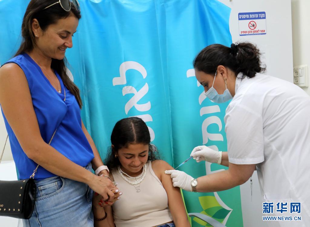 6月22日,在以色列中部城市莫迪因的一處醫(yī)療保健服務站內(nèi),一名未成年人接種新冠疫苗。