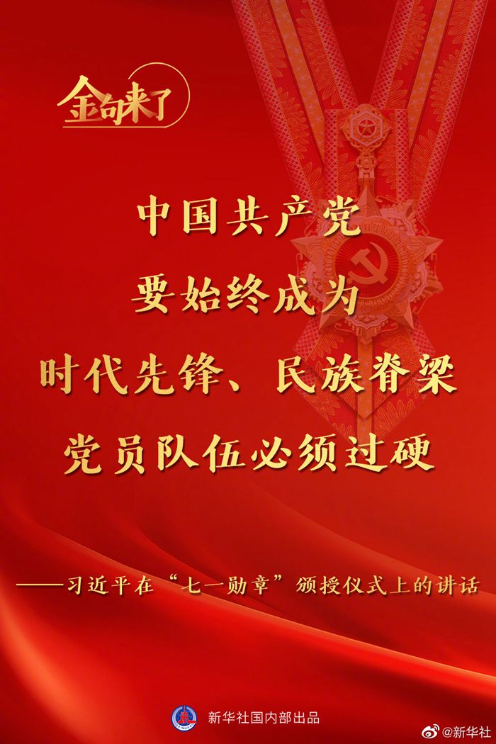 習(xí)近平說,新時代是需要英雄并一定能夠產(chǎn)生英雄的時代。中國共產(chǎn)黨要始終成為時代先鋒、民族脊梁,黨員隊伍必須過硬。希望受到表彰的同志珍惜榮譽、發(fā)揚成績,爭取更大光榮。各級黨組織要從工作和生活上關(guān)心愛護功勛黨員,大力宣傳“七一勛章”獲得者的感人事跡和崇高品德,在全黨全社會形成崇尚先進(jìn)、見賢思齊的濃厚氛圍,激勵廣大黨員、干部牢記黨的性質(zhì)宗旨,牢記黨的初心使命,不懈奮斗,永遠(yuǎn)奮斗,在全面建設(shè)社會主義現(xiàn)代化國家新征程上,向著第二個百年奮斗目標(biāo)、向著中華民族偉大復(fù)興的中國夢奮勇前進(jìn)!?