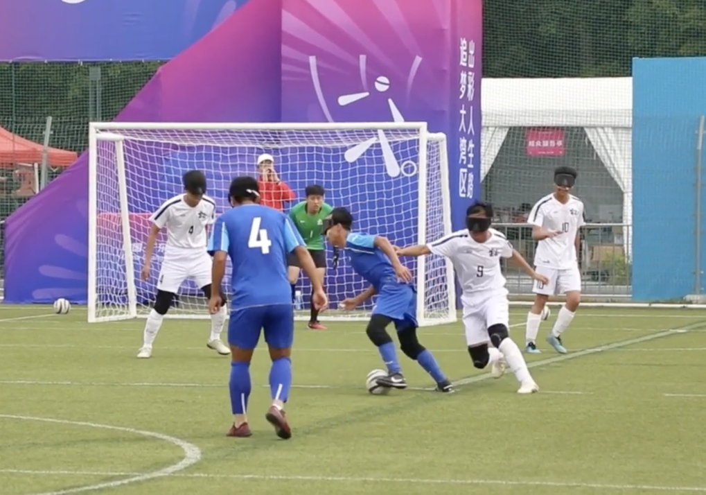 盲人足球运动员对声音的敏感度远超常人。在球场上,他们是靠着铃声来判断足球的位置。对于这支队伍来说,这个赛场是需要用耳用心去感受的。