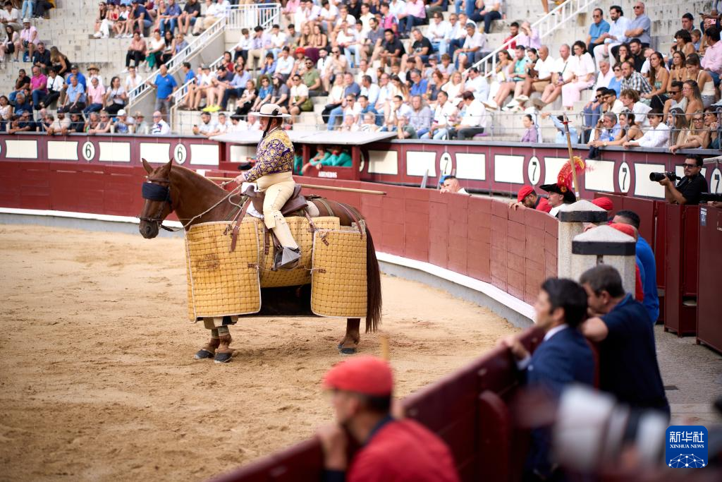 2025年9月7日,一名骑马长矛手在西班牙首都马德里的拉斯本塔斯斗牛场内参加表演。新华社记者 孟鼎博 摄