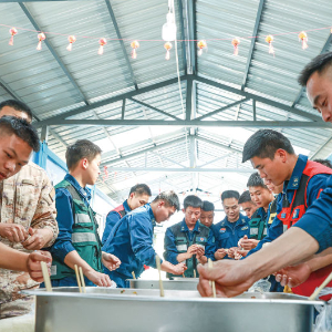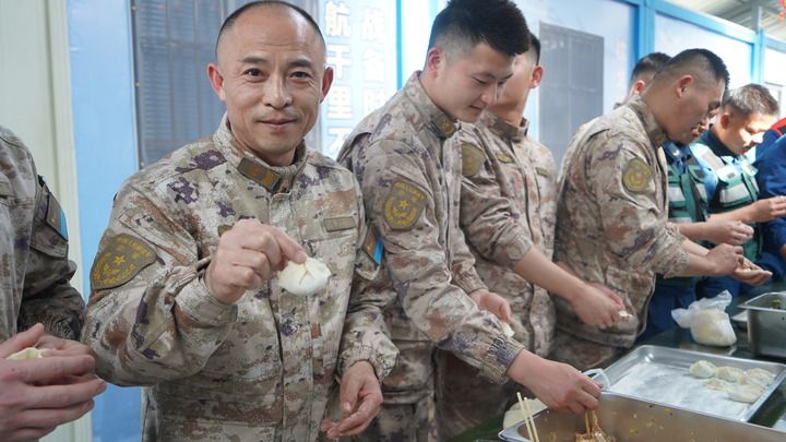 2月16日,空军航空兵某旅驻训分队组织官兵包饺子。蓝善湖摄