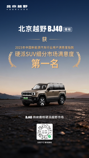 不难看出,BJ40增程完美地平衡了越野的可靠性、长途穿越的续航性、以及城市日常的经济性三大需求,是名副其实的全能王。凭借硬核实力,12月3日,在中国质量协会2025年NEV-CACSI中国新能源汽车行业用户满意度指数测评中,BJ40增程获得硬派SUV细分市场满意度第一,再次展现品质实力。