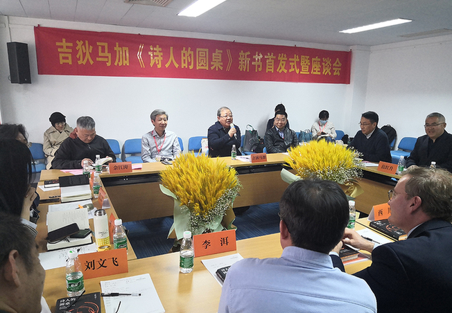新華網(wǎng)北京4月1日電 由江蘇鳳凰文藝出版社主辦的吉狄馬加《詩人的圓桌》新書首發(fā)式暨座談會于3月31日下午在北京舉行。中國作協(xié)副主席、書記處書記,著名詩人吉狄馬加與著名作家李洱,著名詩人、翻譯家高興、西川、樹才、劉文飛,以及法國駐華使館公使銜文化參贊高明、鳳凰出版?zhèn)髅郊瘓F(tuán)總經(jīng)理孫真福、鳳凰出版?zhèn)髅焦煞萦邢薰究偨?jīng)理佘江濤等嘉賓出席此次活動,就新書內(nèi)容、詩歌寫作與翻譯及中外詩歌交流等話題展開對話。
