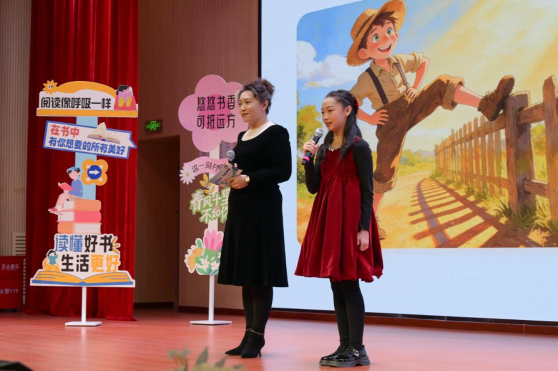 3月27日,新疆教育学院实验小学四年级学生许濯缨(右)与妈妈马若飞在活动中分享阅读后的心得体会。
