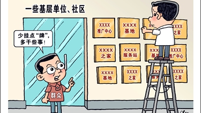 開展達(dá)標(biāo)評比、創(chuàng)建示范活動,本是以標(biāo)兵引領(lǐng)推動工作落實的有效之舉。但是一些部門卻將發(fā)牌視為“工作下沉”的象征,認(rèn)為“掛牌即落實”,甚至將掛牌數(shù)量與考核排名掛鉤,大搞“繁瑣哲學(xué)”,動輒開發(fā)出上百項指標(biāo),以此下移壓力。部分社會組織甚至以“達(dá)標(biāo)創(chuàng)建”之名創(chuàng)收牟利,造成負(fù)面影響。