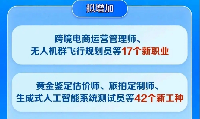 近日,人社部宣布擬新增跨境電商運(yùn)營管理師、無人機(jī)群飛行規(guī)劃員等17個新職業(yè),以及生成式人工智能系統(tǒng)測試員、睡眠健康管理師等42個新工種。這些新職業(yè)、新工種既是產(chǎn)業(yè)變革的縮影,也是對社會高質(zhì)量發(fā)展需求的生動回應(yīng)。新職業(yè)持續(xù)涌現(xiàn),開啟了時代創(chuàng)造的無限可能。面對職業(yè)選擇,不少年輕人主動擁抱變化,抓住新賽道。