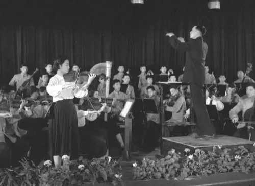 1959年5月27日,小提琴協(xié)奏曲《梁祝》在上海蘭心大戲院首演。指揮:樊承武 小提琴:俞麗拿