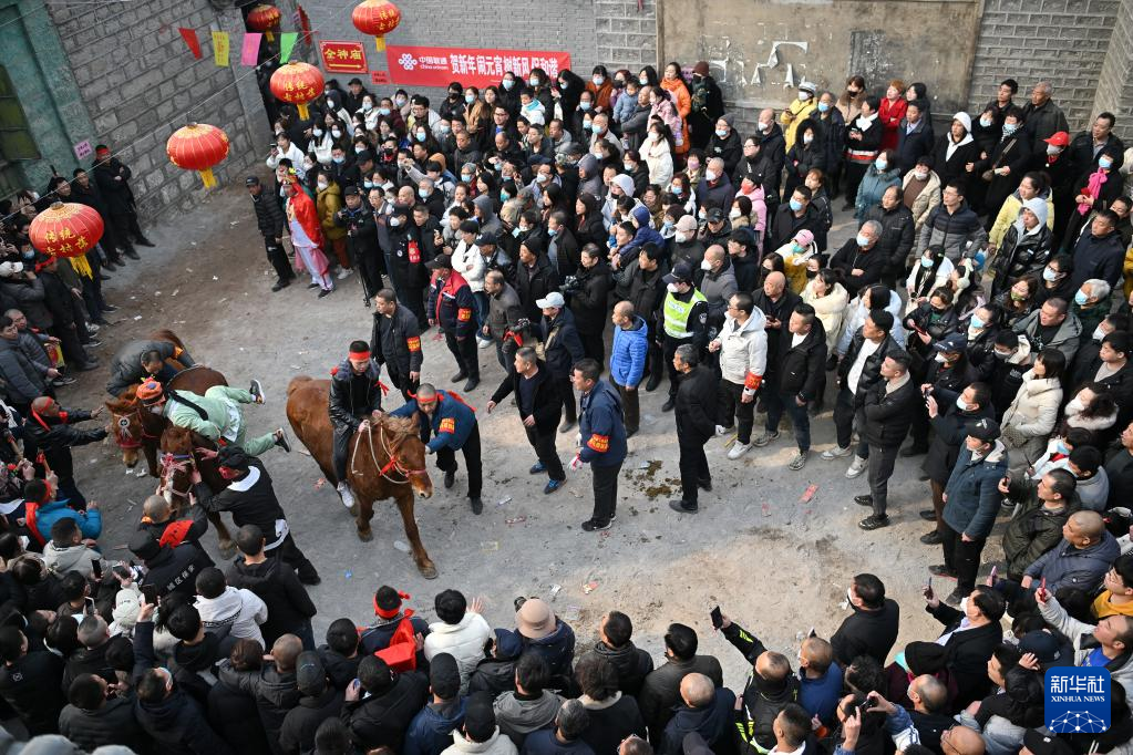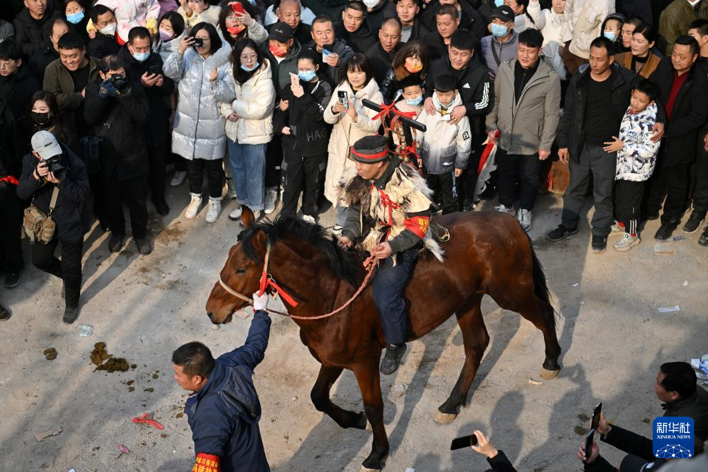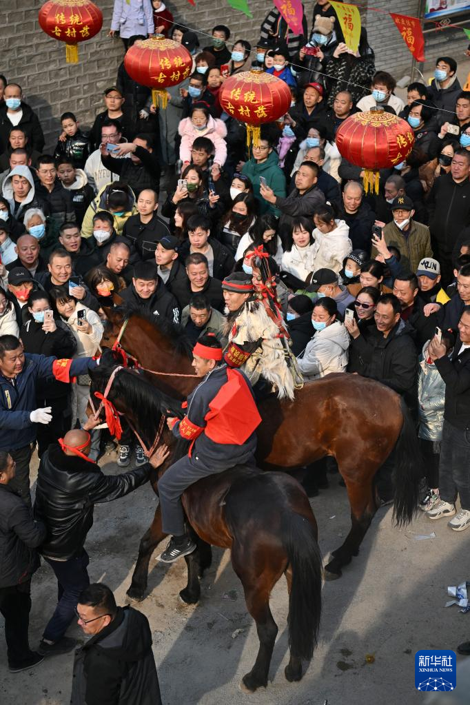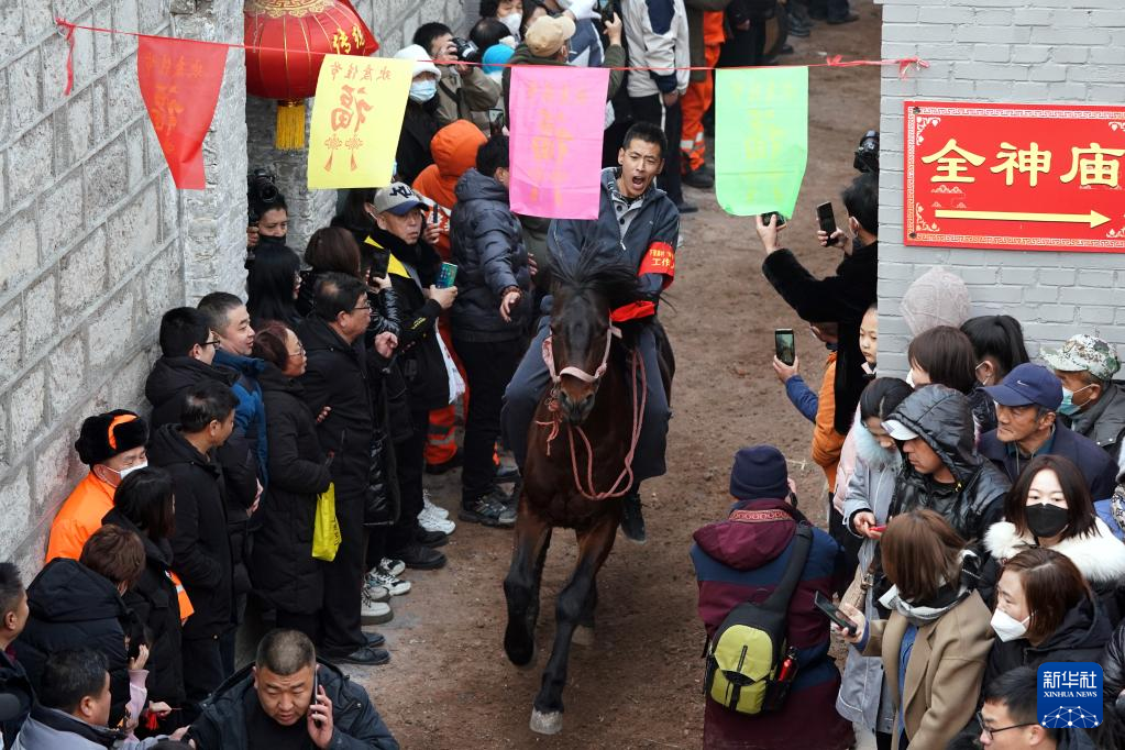 当日是农历正月十六,山西省阳泉市平定县下董寨村热闹非凡,当地特有的民俗活动——“跑马排”上演,村民骑着马在古巷里来回飞奔,吸引众多游客观看。