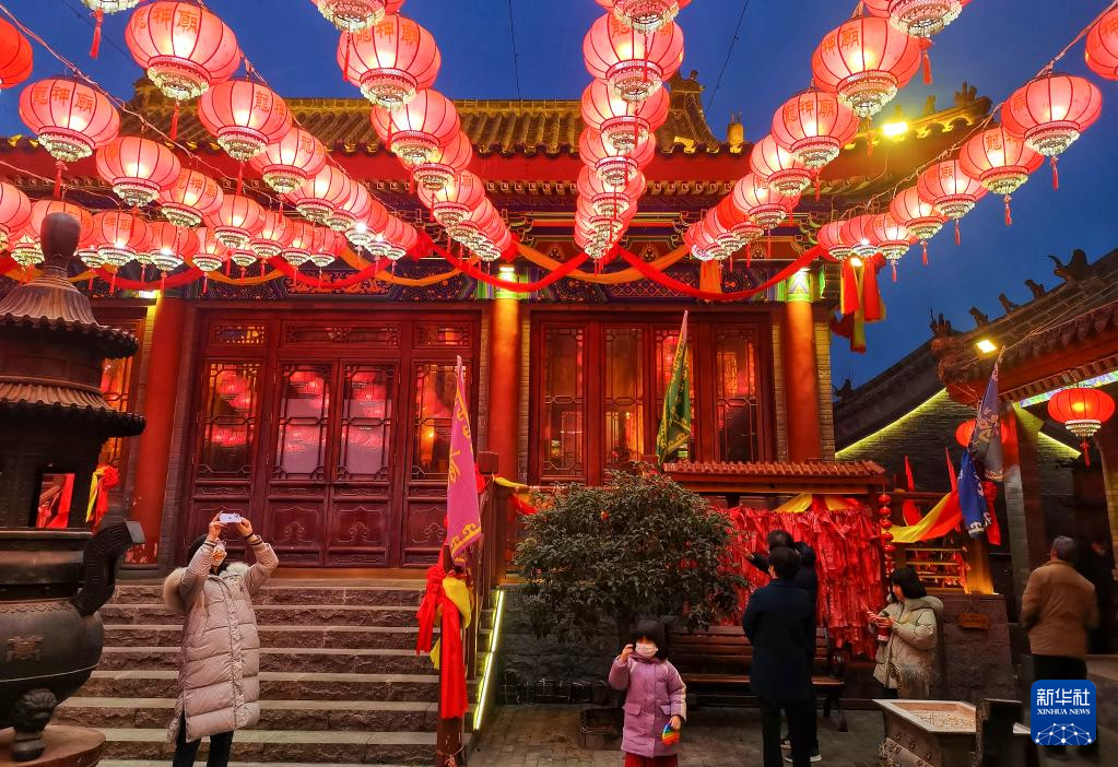 2月5日,人们在山东日照市东夷小镇游玩。