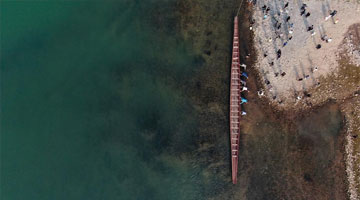 4月1日,在甘肃省兰州市的读者出版集团数字阅读中心读者小站,工作人员与小朋友一起玩“讲述中国神话故事”的飞行棋游戏。