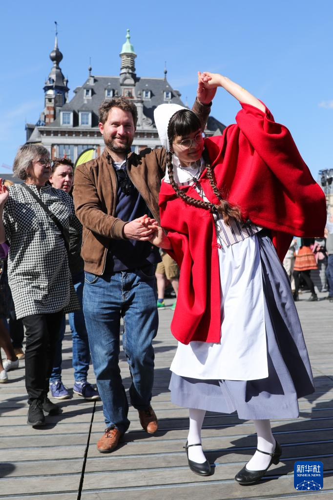 4月15日,人们在比利时那慕尔市传统民俗日活动上跳舞。