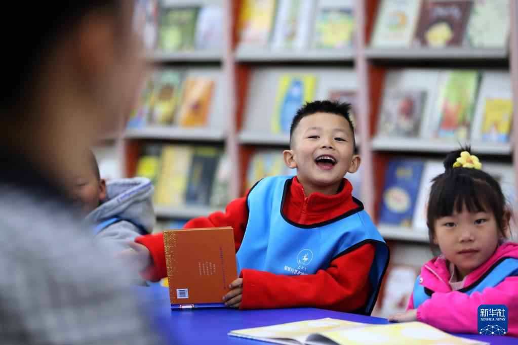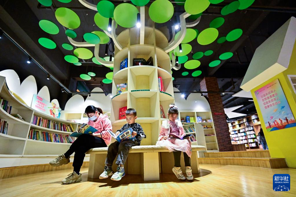 4月22日,小朋友在河北省石家庄市一家书店内阅读绘本。