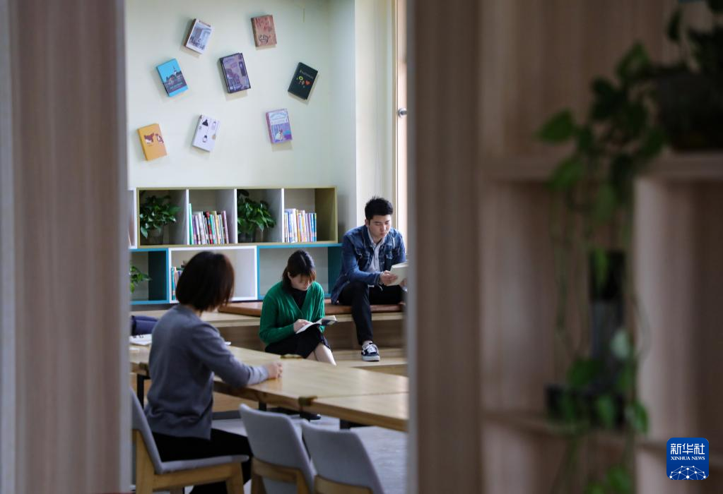 4月21日,人们在安徽省合肥市肥西县柏堰科技园明珠书房阅读空间内阅读。