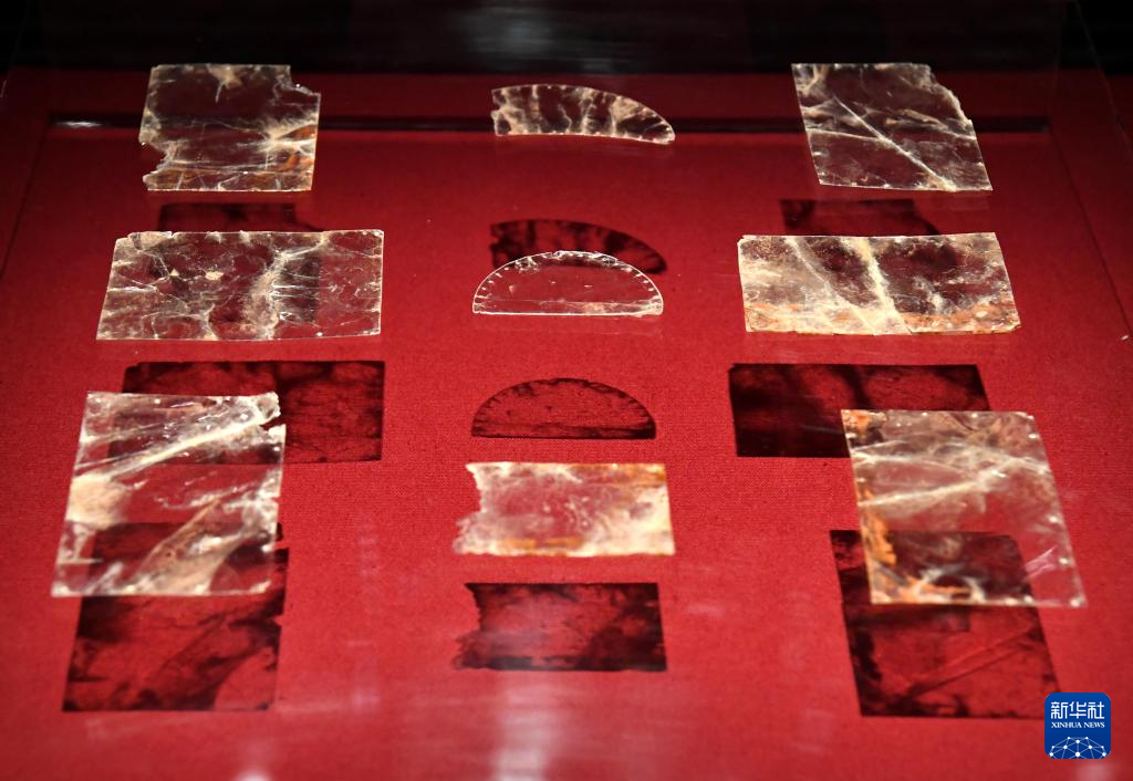 这是曹操高陵遗址博物馆内展出的云母片(4月22日摄)。