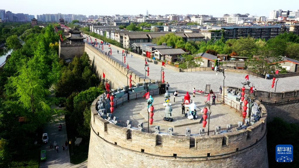 西安城墙东南城角(4月19日摄,无人机照片)。