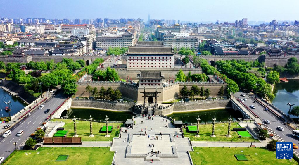 西安城墙永宁门(4月25日摄,无人机照片)。