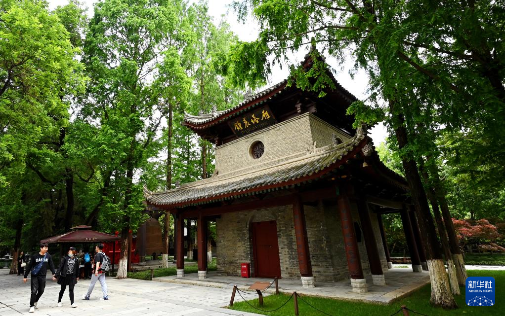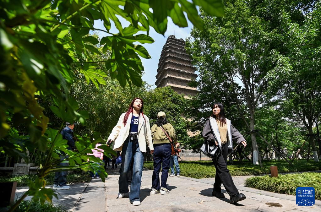 游客在西安荐福寺内参观游览(5月8日摄)。