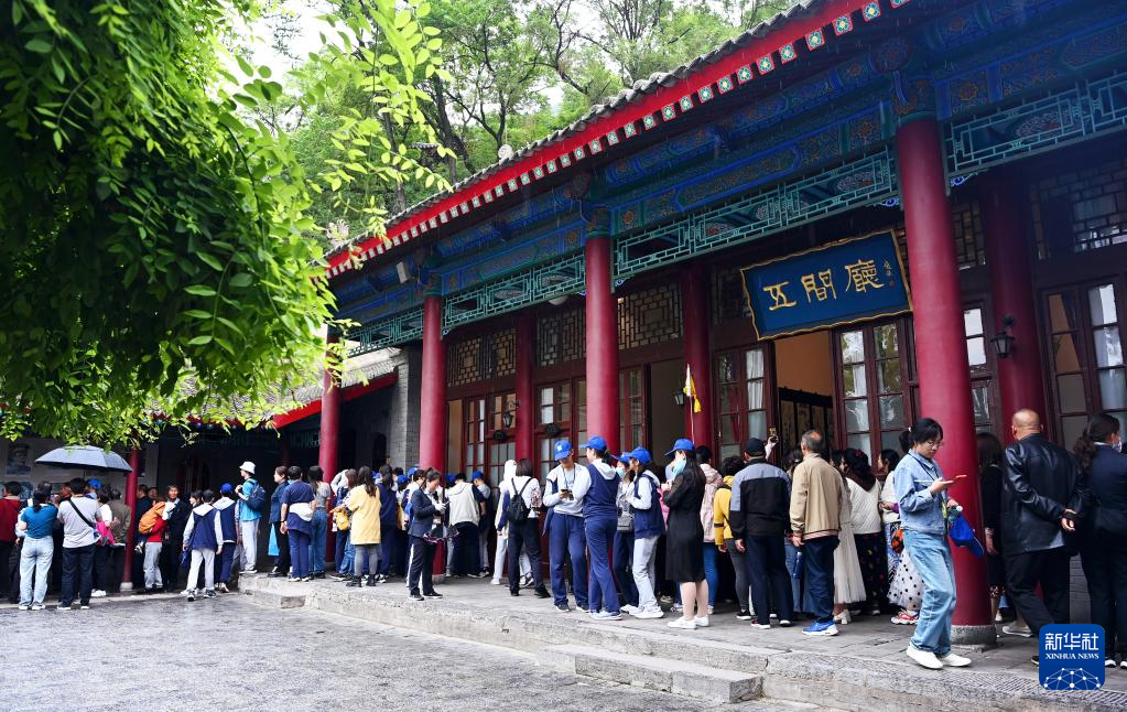 游客在西安华清宫景区尚食汤参观游览(5月5日摄)。