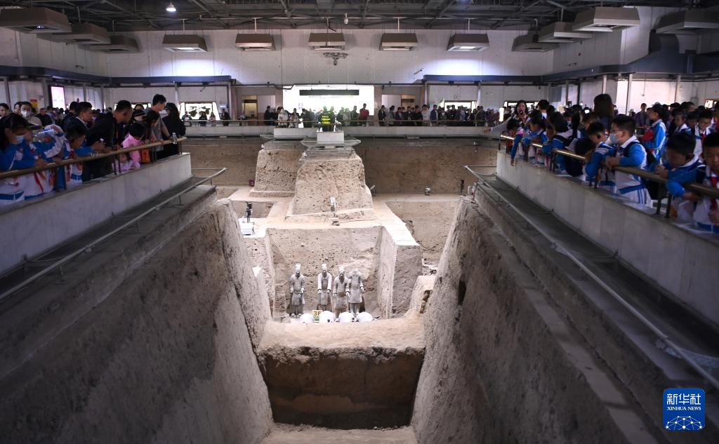 游客在秦兵马俑三号坑遗址参观(4月26日摄)。