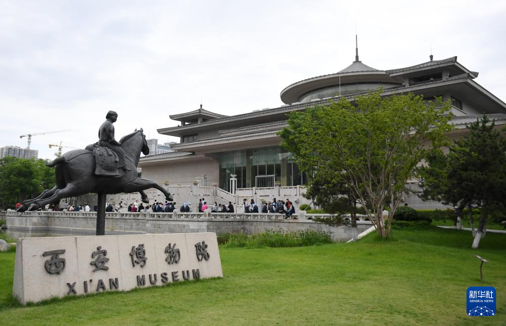 5月8日,游客在西安博物院参观唐代三彩腾空马。飞腾的三彩马上骑有一胡俑,真实再现了丝绸之路上西域胡人急奔长安的生动形象。