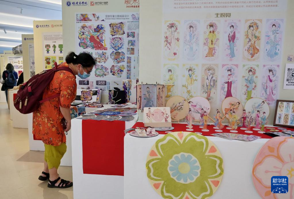 5月28日,观众在福建商学院艺术设计学院“2023毕业生优秀作品展”上参观。