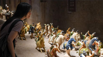 6月6日,游客在南石山村的唐三彩作品陈列展示馆内参观。