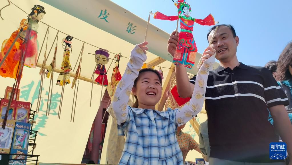 6月10日,河南省开封市2023年“文化和自然遗产日”暨首届“中国·开封宋文化非遗节”启动仪式在开封府景区举行,皮影展示活动深受孩子们的喜爱。