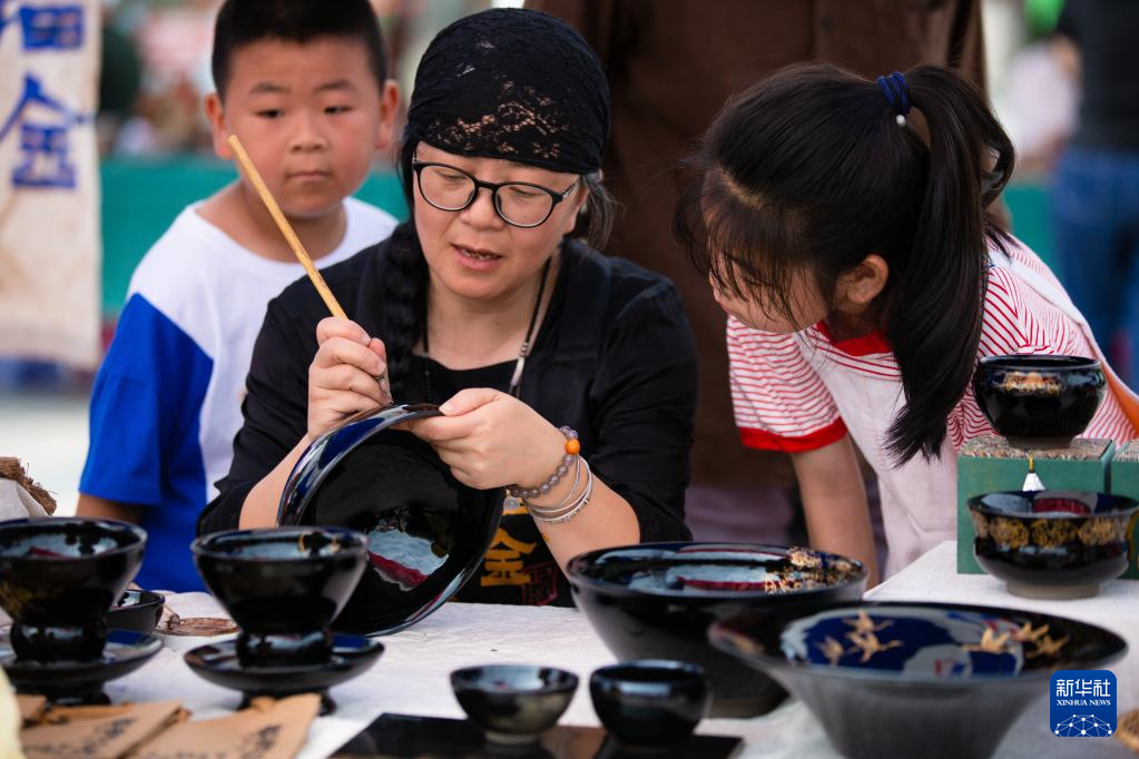 6月10日,手工艺人在福建武夷山市举办的“文化和自然遗产日”活动中,向游客展示黑釉茶盏制作技艺。