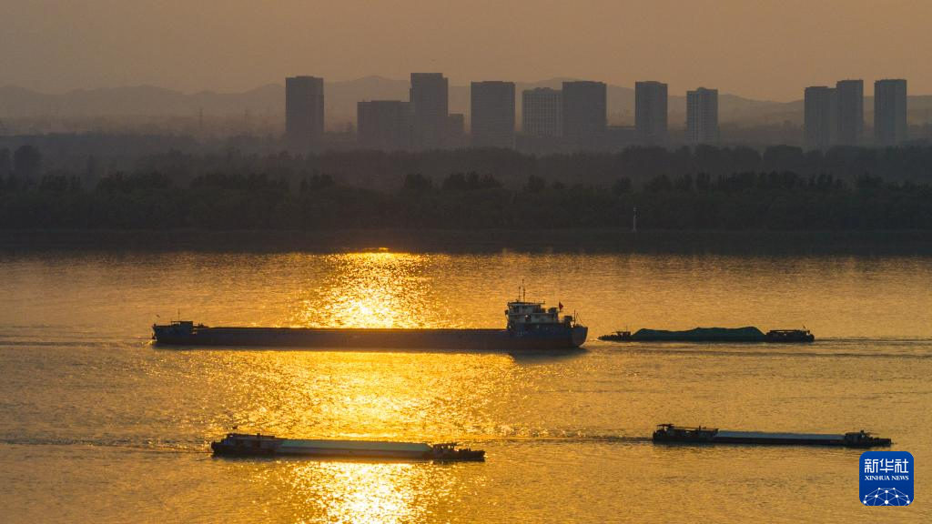 货轮在长江南京段航行(6月13日摄,无人机照片)。