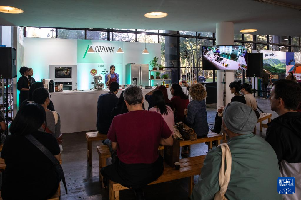 6月23日,参观者在巴西圣保罗举行的咖啡节上学习制作咖啡。