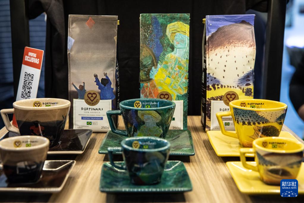 这是6月23日在巴西圣保罗举行的咖啡节上拍摄的咖啡杯。