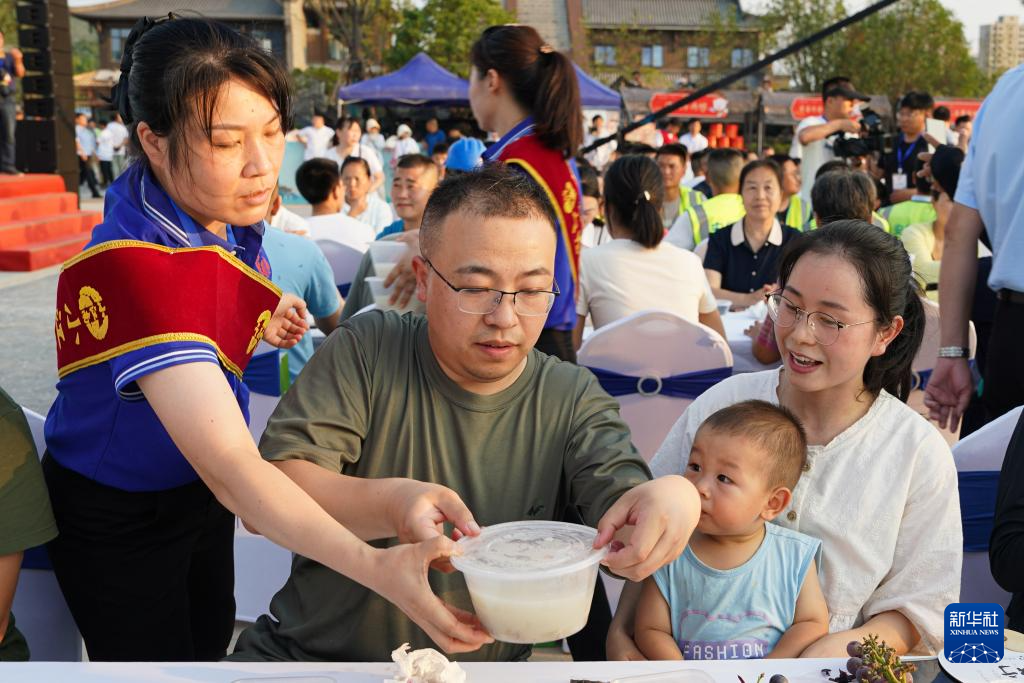当日是初伏首日,在安徽省宿州市萧县,一场“千人喝羊汤”活动在当地水墨圣泉古镇广场举行。萧县素有入伏吃羊肉、喝羊汤的习俗,并形成独具特色的伏羊节。