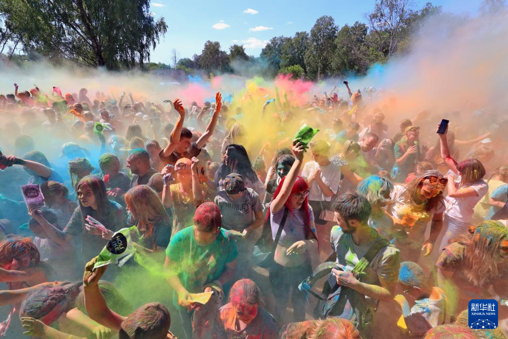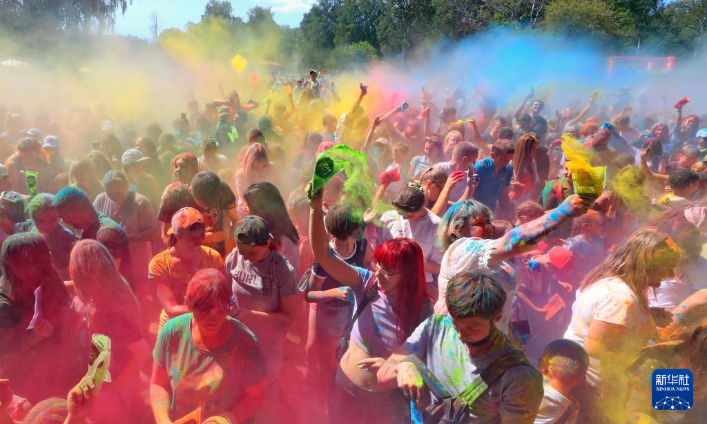 7月16日,人们在白俄罗斯维捷布斯克参加色彩节。