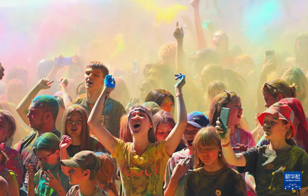 当天,第32届“斯拉夫巴扎”国际艺术节附属活动色彩节在白俄罗斯维捷布斯克举办,吸引众多年轻人参加。
