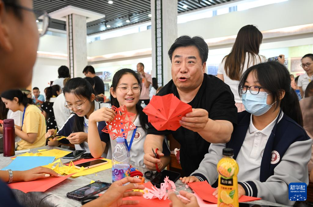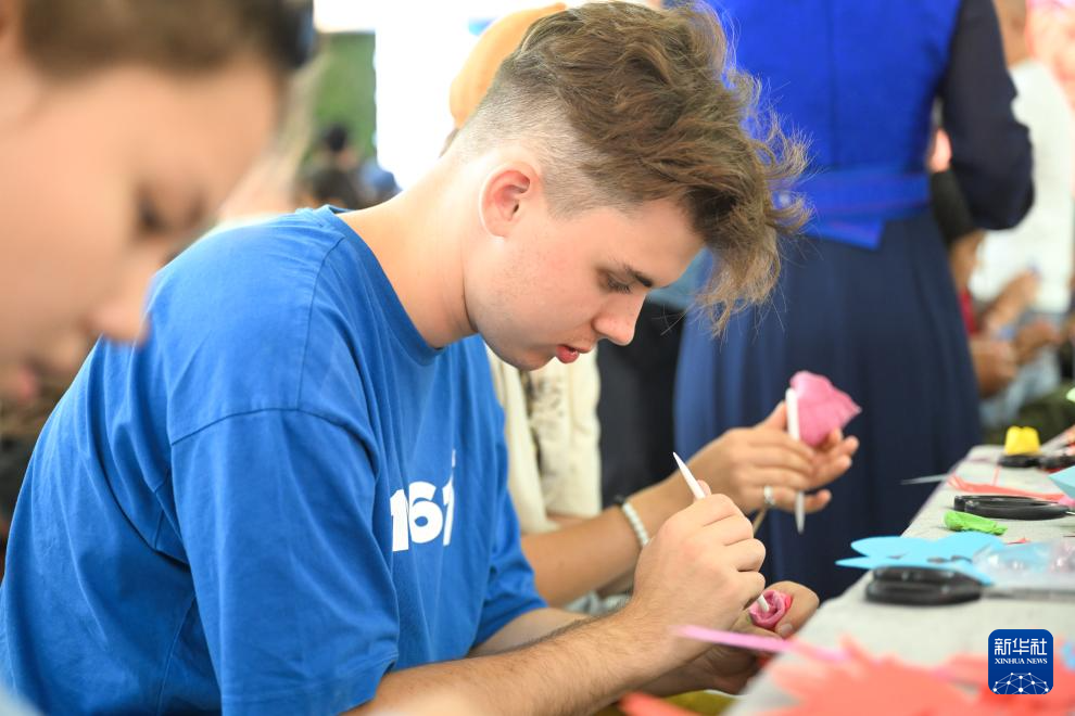 当日,来自2023呼和浩特国际青少年友好交流营的百余名中外师生来到内蒙古呼和浩特市内蒙古展览馆,学习体验和林格尔剪纸、青城面塑、马头琴制作等传统非遗技艺。