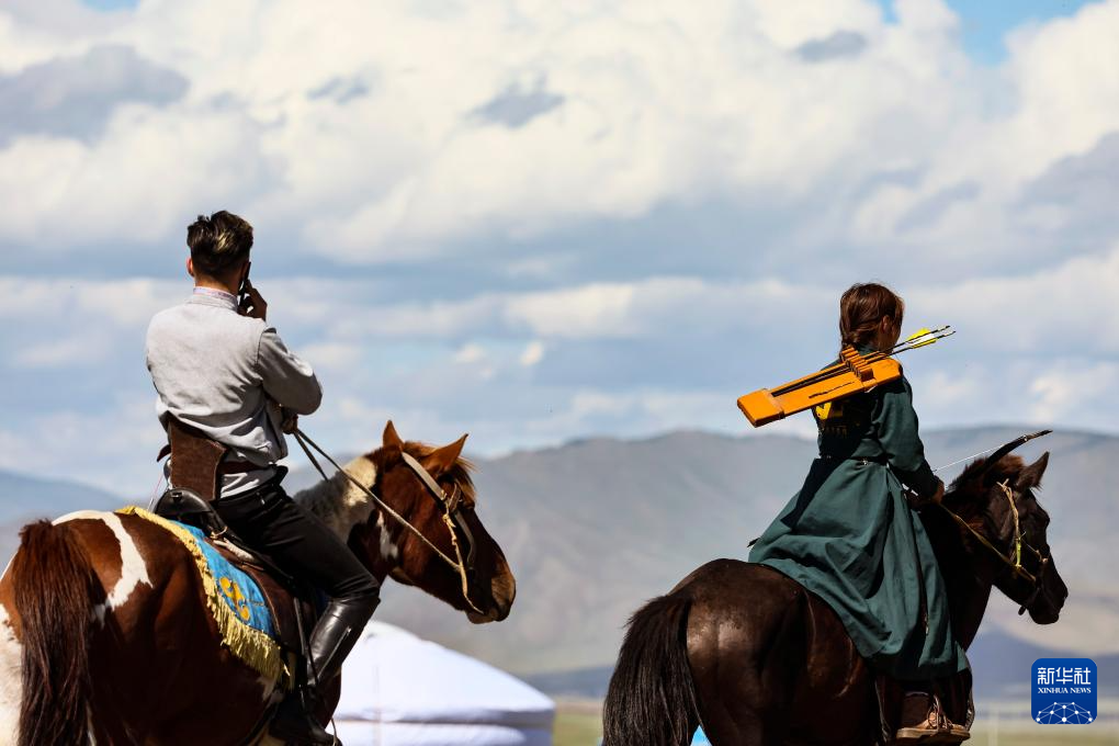 这是8月19日在蒙古国泰吉山谷举行的“游牧民族”世界文化节上拍摄的男女选手。