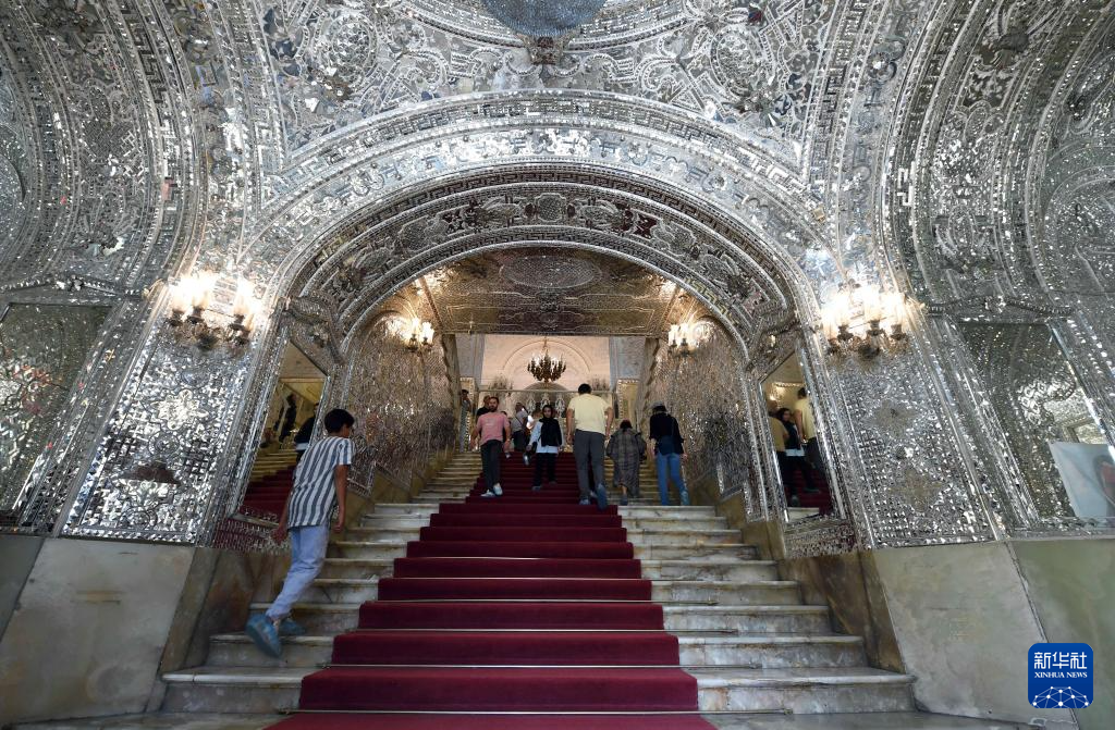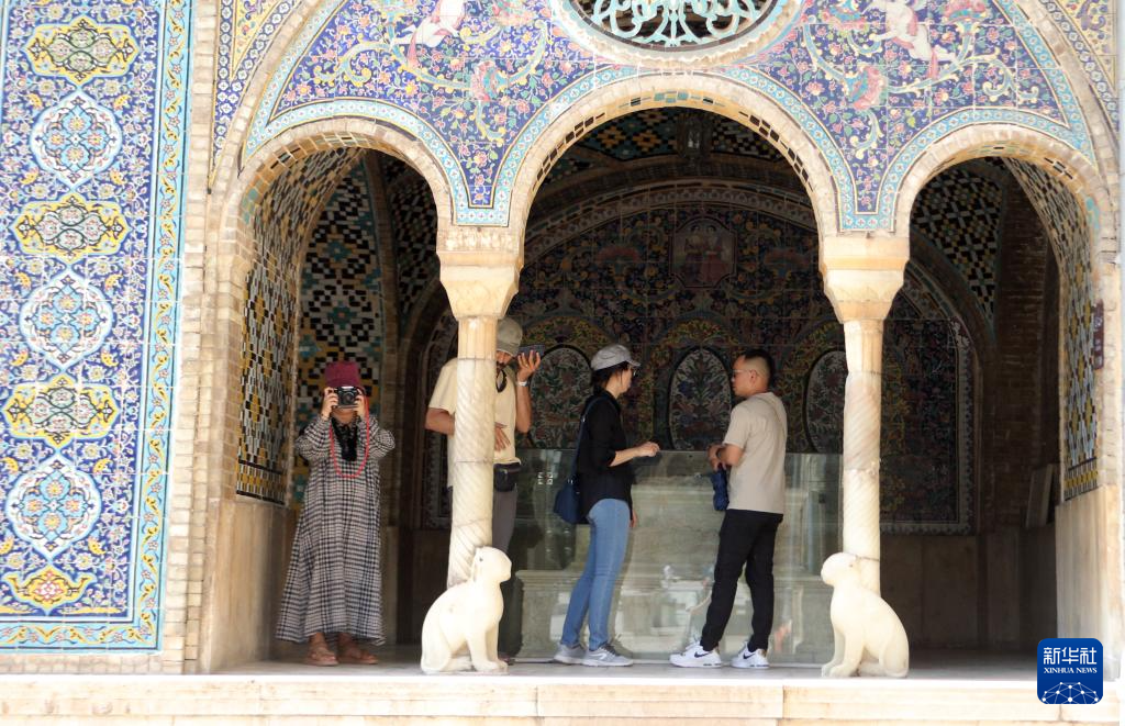 8月27日,游客在伊朗首都德黑兰参观古列斯坦王宫。