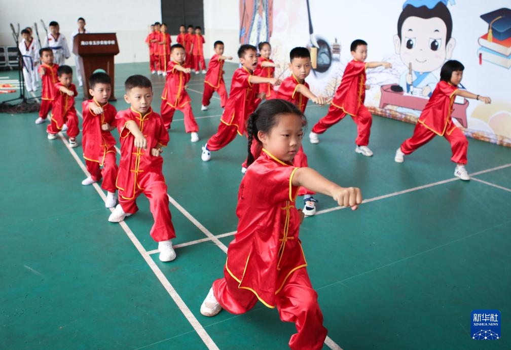 8月30日,海口市玉沙实验学校的武术队在“开笔礼”仪式活动现场表演。