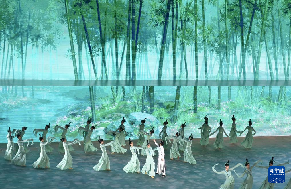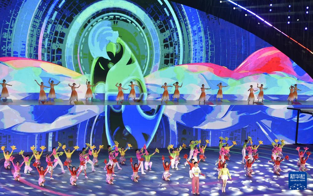 9月16日拍摄的第十一届中国·焦作国际太极拳大赛暨2023云台山旅游节开幕式文艺演出现场。