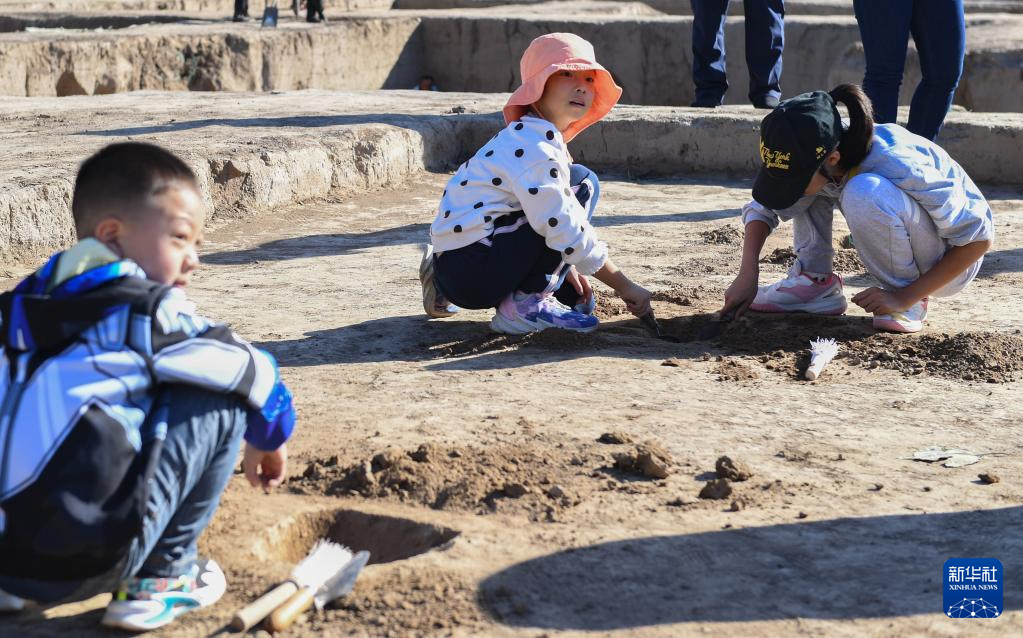 当日,2023北京公众考古季家庭考古研学活动在北京通州路县故城遗址举办。20组家庭走进考古发掘的现场,体验考古勘探及发掘工作,学习考古工具使用、铜钱拓片制作等技艺,感受考古工作的魅力。