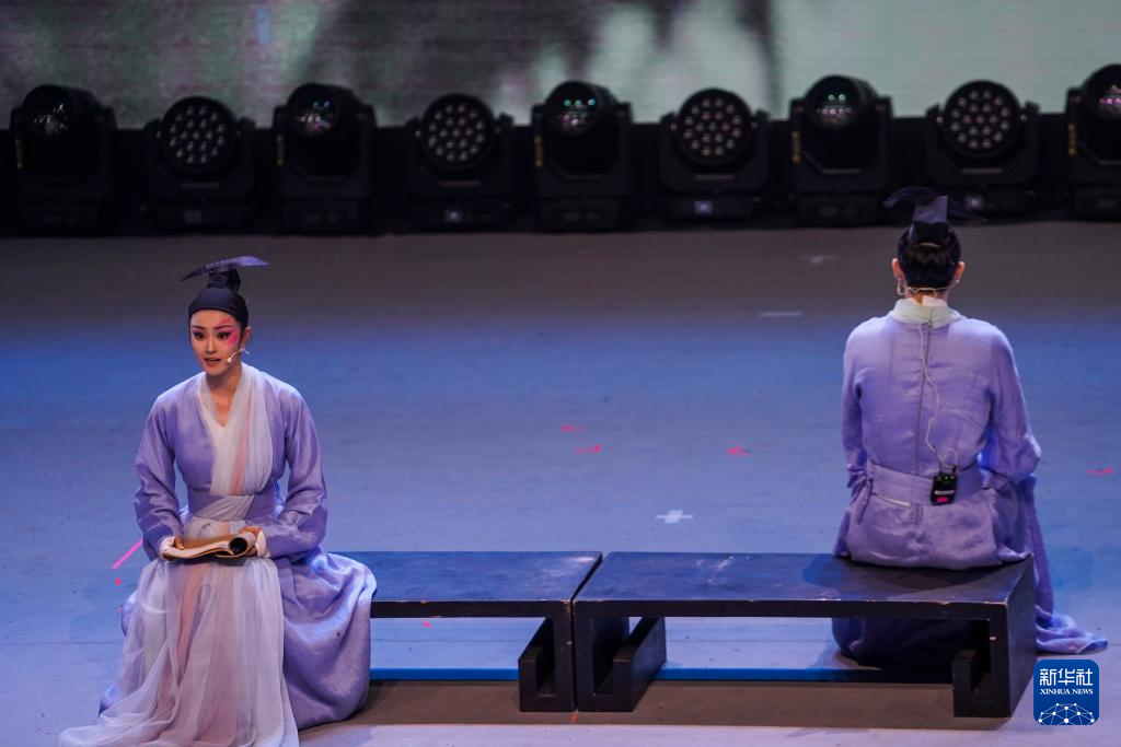 10月27日,在广西桂林大剧院,演员们在表演话剧。
