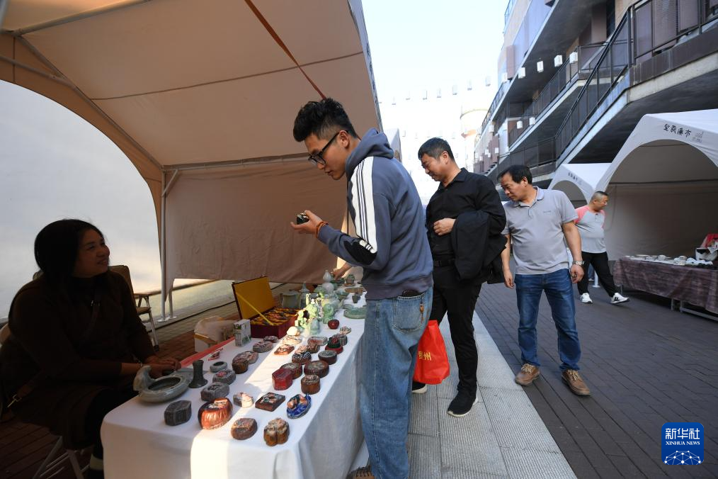 10月30日,人们在龙泉市望瓯·陶溪川文化街区逛陶瓷主题市集。
