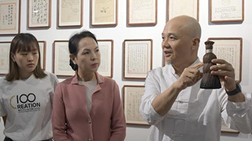 当日,十竹斋木版水印艺术作品展在暨南大学广州石牌校区举行。国家非遗项目木版水印技艺代表性传承人魏立中在展览现场为学生导赏、授课,并指导学生体验木版水印手作的乐趣。