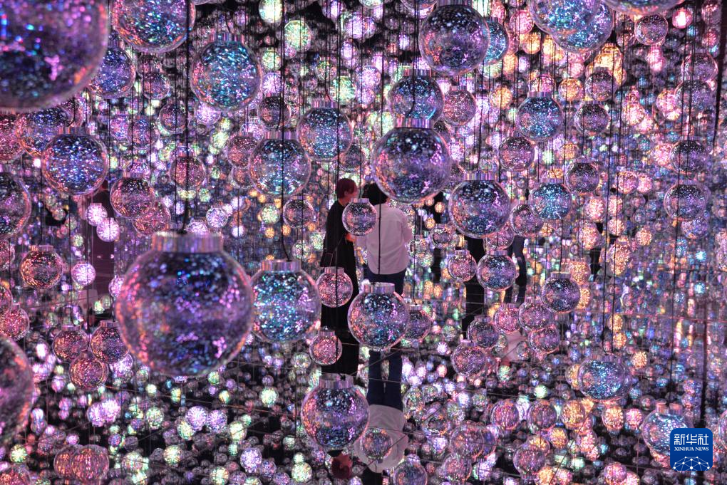 这是11月20日在日本东京“teamLab无界”美术馆的媒体预览活动上拍摄的艺术作品“泡泡宇宙”。